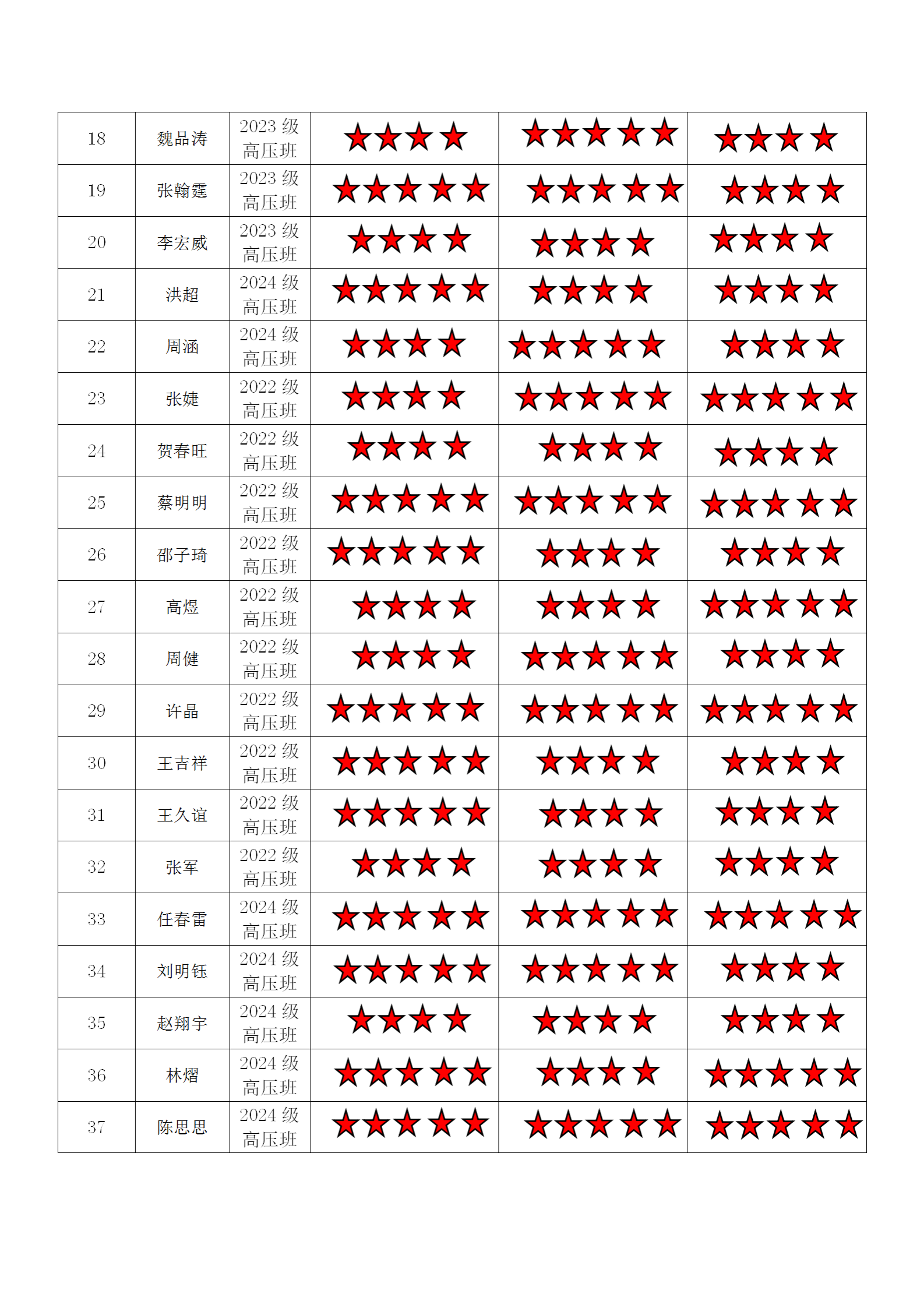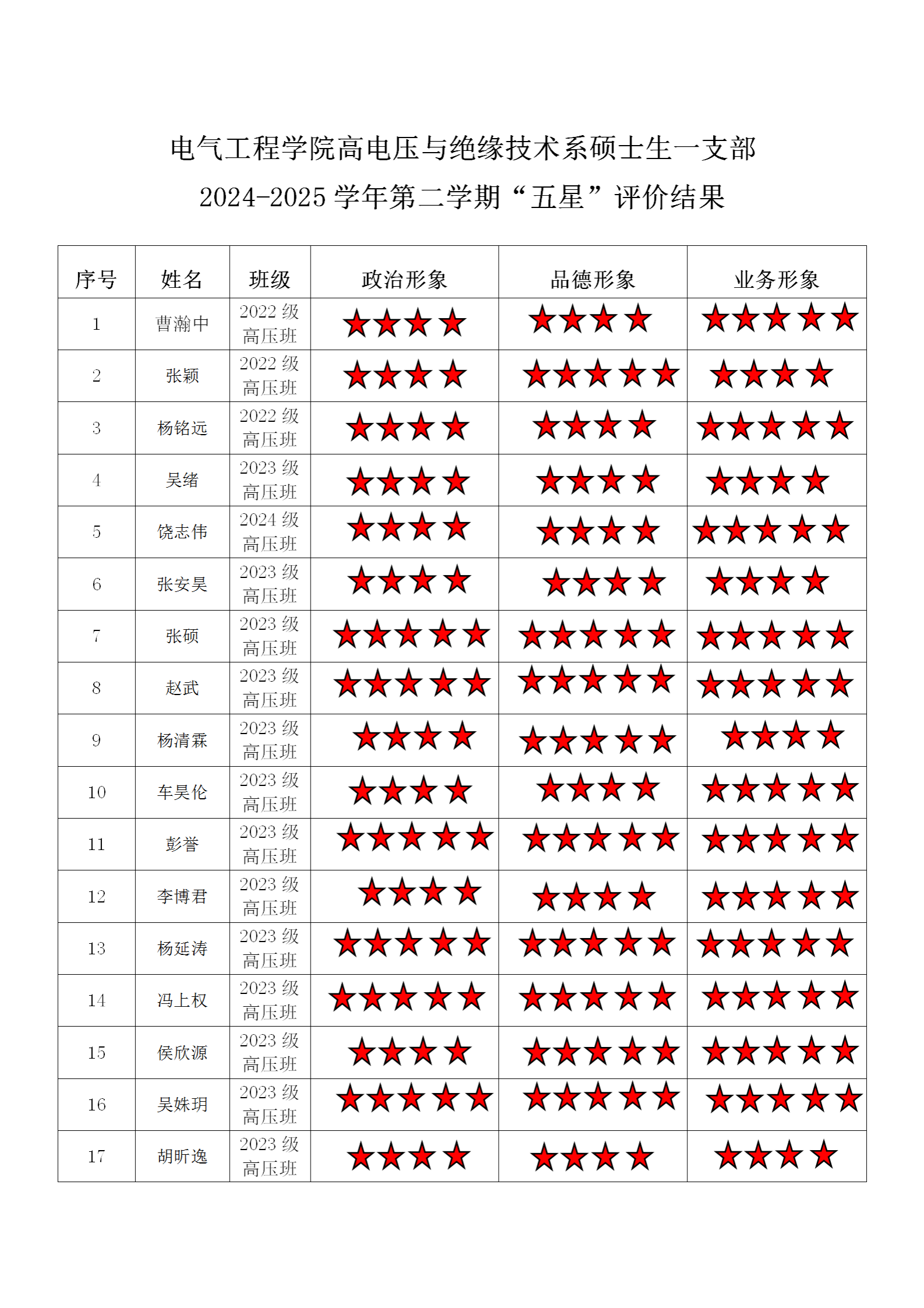 小说狂人 高压一支部 2024-2025学年第二学期“五星”评价结果