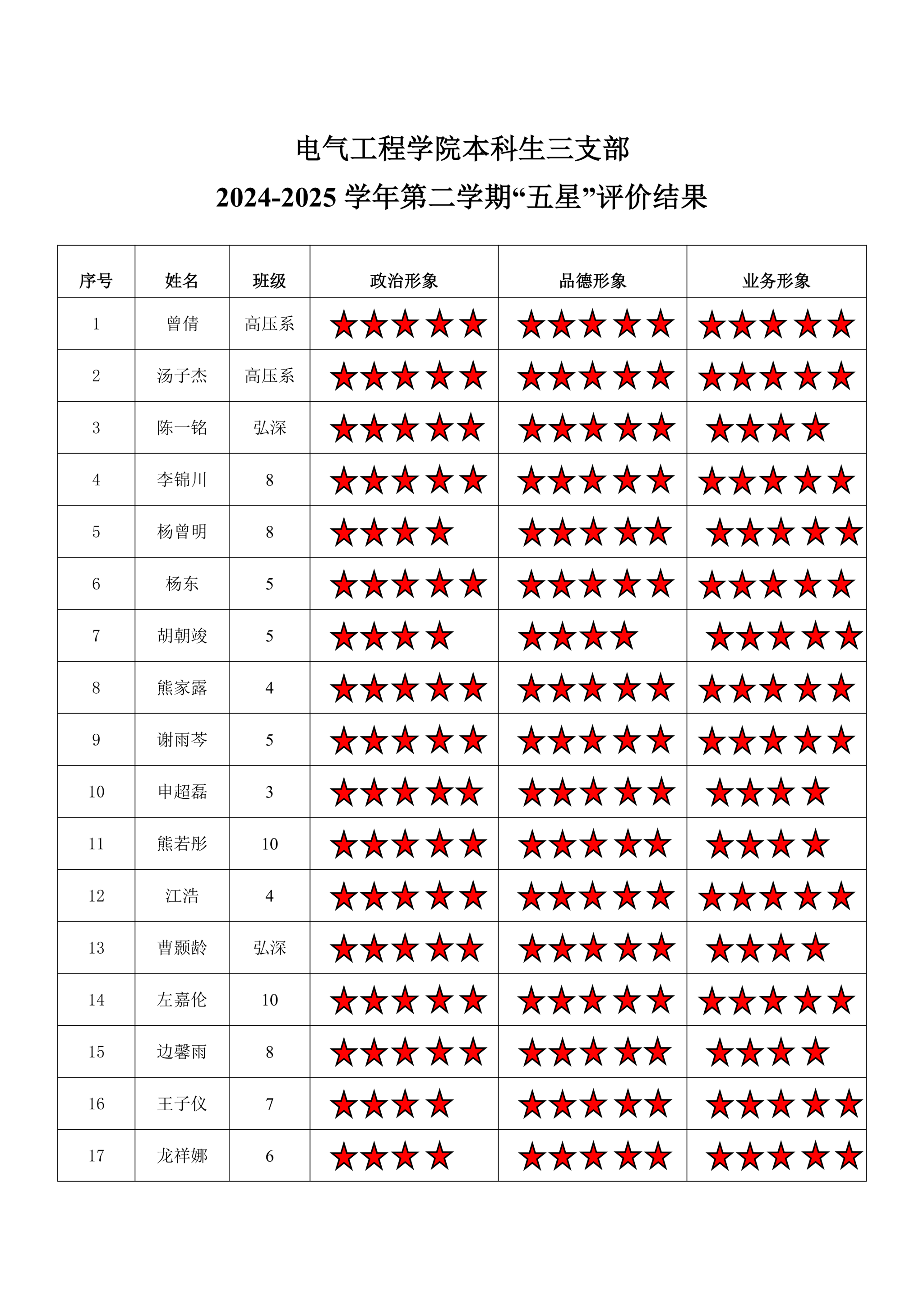 小说狂人 本科生四支部 2024-2025学年第二学期“五星”评价结果
