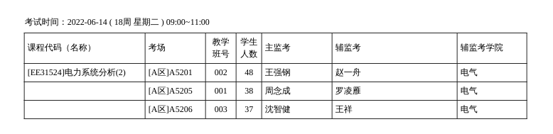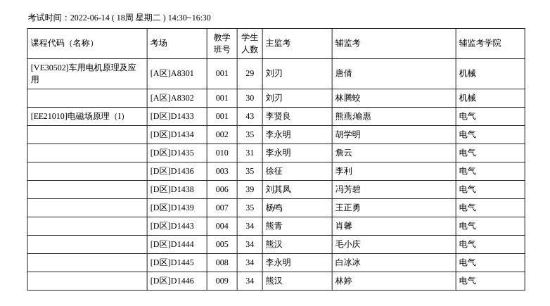 2021-2022第二学期期末集中考试周(18周)考试安排