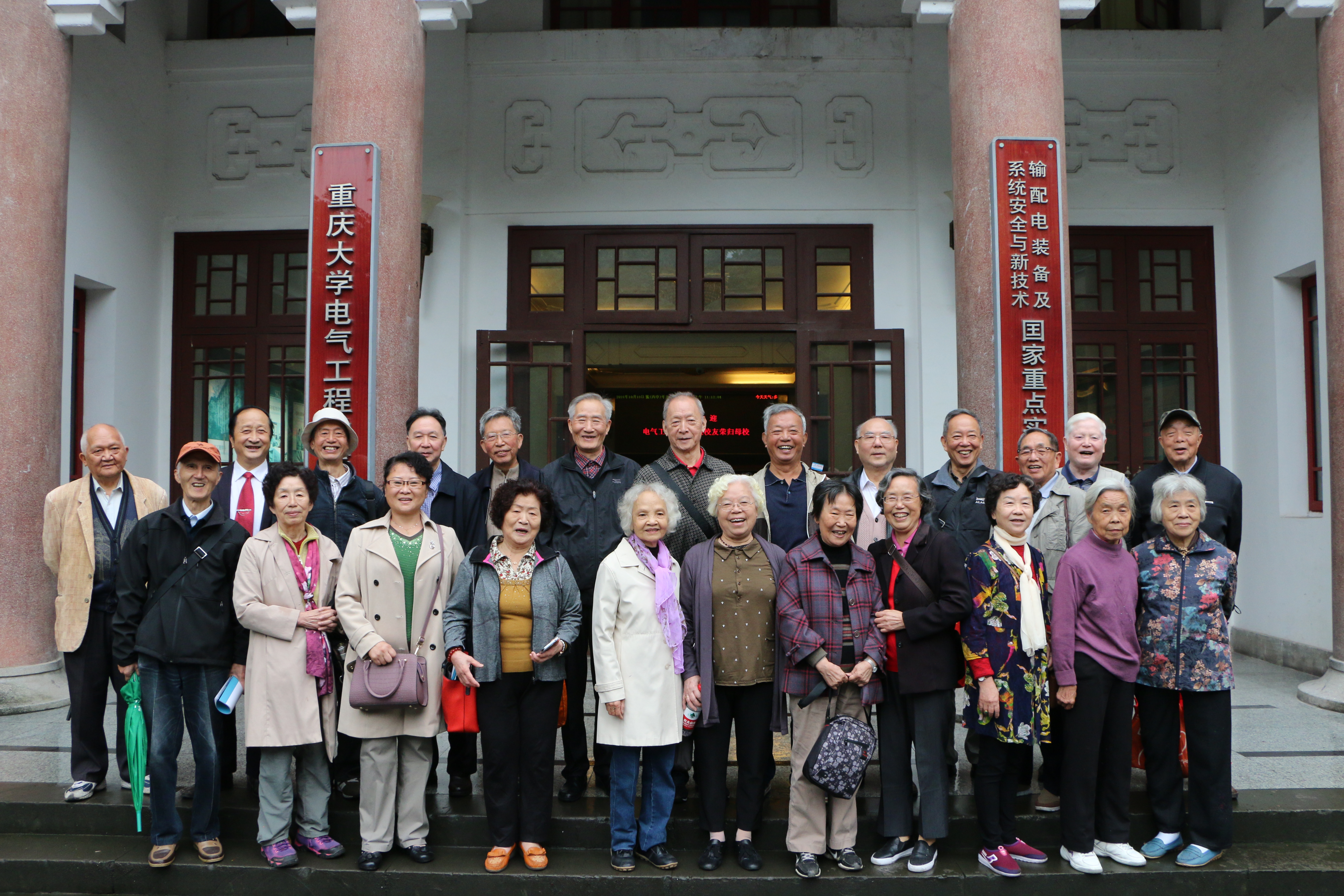 回忆过后,校友们移步学院楼前合影留念。并在志愿者同学的带领下了解了学院实验室的发展历史,同时参观了风力发电和新能源电力技术研究实验室。