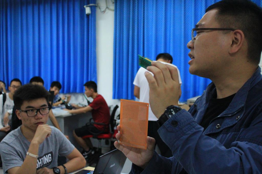 图3 电赛培训活动现场 图4 指导老师讲解电子设计知识