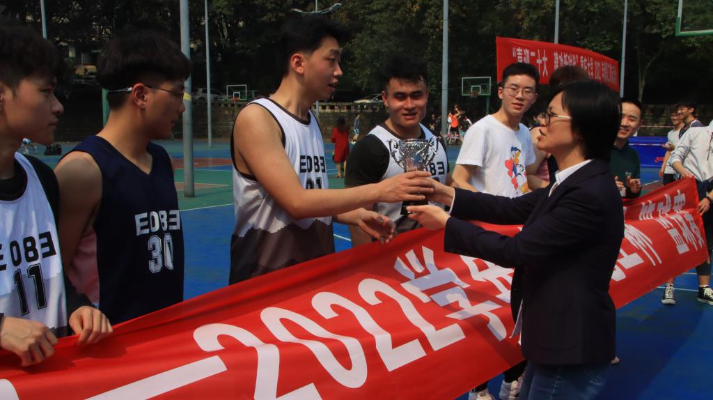 A区钟塔旁篮球场举行,电气本科1906班和1908班一路披荆斩棘、力克强敌,从2019级和2020级共16个班级中脱颖而出,争夺最后的冠军。学院党委副书记吴嘉、学办主任罗敏、学办副主任王祥、院团委书记喻惠、研究生辅导员杨春花、本科2019级辅导员陈思思等出席此次决赛,为球员们加油喝彩。