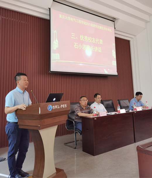 接着,1999级的优秀校友代表石小波院长进行了讲话。他结合自己在重大学习以及企业工作的经历建议同学们珍惜来之不易的学习机会,提前做好研究生阶段的人生规划。