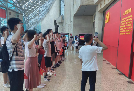 参观完博物馆,支部党员们在一楼大厅集中,庄严地面对党徽重温了入党誓词。习近平总书记曾强调:“入党誓词字数不多,记住并不难,难的是终身坚守。每个党员要牢记入党誓词,经常加以对照,坚定不移,终生不渝。”同志们表示将坚决落实习近平总书记要求,保持奋斗不息的精神,坚定自己的理想信念,忠实践行入党誓词。