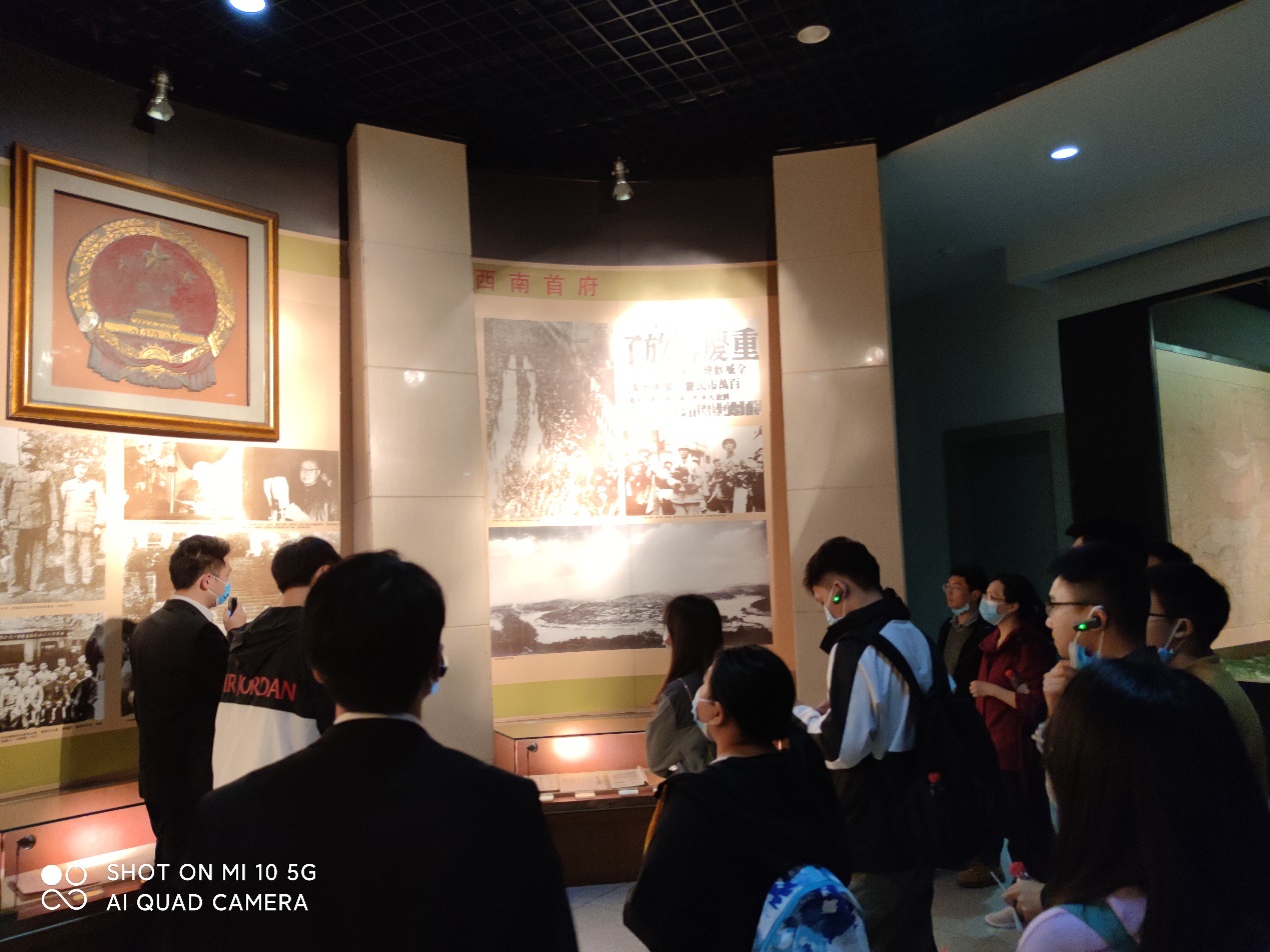 支部同志们一同参观了“壮丽三峡”、“远古巴渝”、“抗战岁月”和“城市之路”四个展区,展区内展品鲜活生动,向我们展示了重庆地区恢弘壮丽的自然景观和近代以来重庆人民艰苦卓绝的奋斗史诗。同志们了解了长江三峡的形成与发展、长江流域丰富宝贵的水产资源、以及重庆早期的地质地貌,不禁感叹大自然鬼斧神工的魅力。横亘于长江天险上的宏伟的三峡水利枢纽是建设“伟大工程”的生动体现,库区人民发扬大局精神,响应国家号召,掀起了浩浩荡荡的移民高潮是爱国主义精神的真实写照,三峡移民精神激励着一代代中国人民团结奋进、勠力同心,共同谱写新时代的精彩华章。重庆自古就是一座英雄的城市,近代以来的中国处于内外交困、亡国灭种的危机中,重庆人民为人类和平进步事业作出了英勇无畏的斗争。在抗日战争和世界反法西斯战争中重庆地区涌现出了无数仁人志士,为解放中国抛头颅,洒热血,用生命捍卫祖国领土和民族尊严。