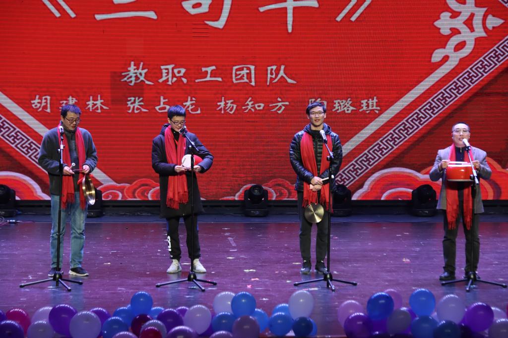 联欢会第一章“缘起而聚”展现的是师生与学院之间美妙的缘分。舞蹈《一心一译》展现了学生们对于青春未来的热爱;歌曲串烧《我的青春我的国》民谣娓娓道来,歌颂祖国歌颂美好青春;教职工团队演绎的《三句半》则凭借押韵而不失幽默的语句,引得现场观众拍手叫绝。