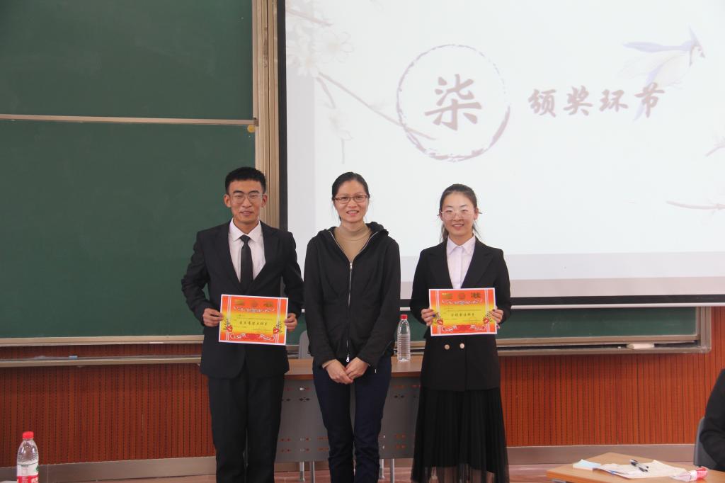 在五位评委们分别对双方辩手的表现进行了详细的评论后,经过评委们的投票评定,正方电气一班辩论队荣获新生辩论赛冠军,反方电气九班辩论队获得亚军,同时电气九班张佳琪被评为最佳辩手,电气一班公乐腾被评为最具潜力辩手。喻惠老师为获奖辩论队及辩手颁奖。