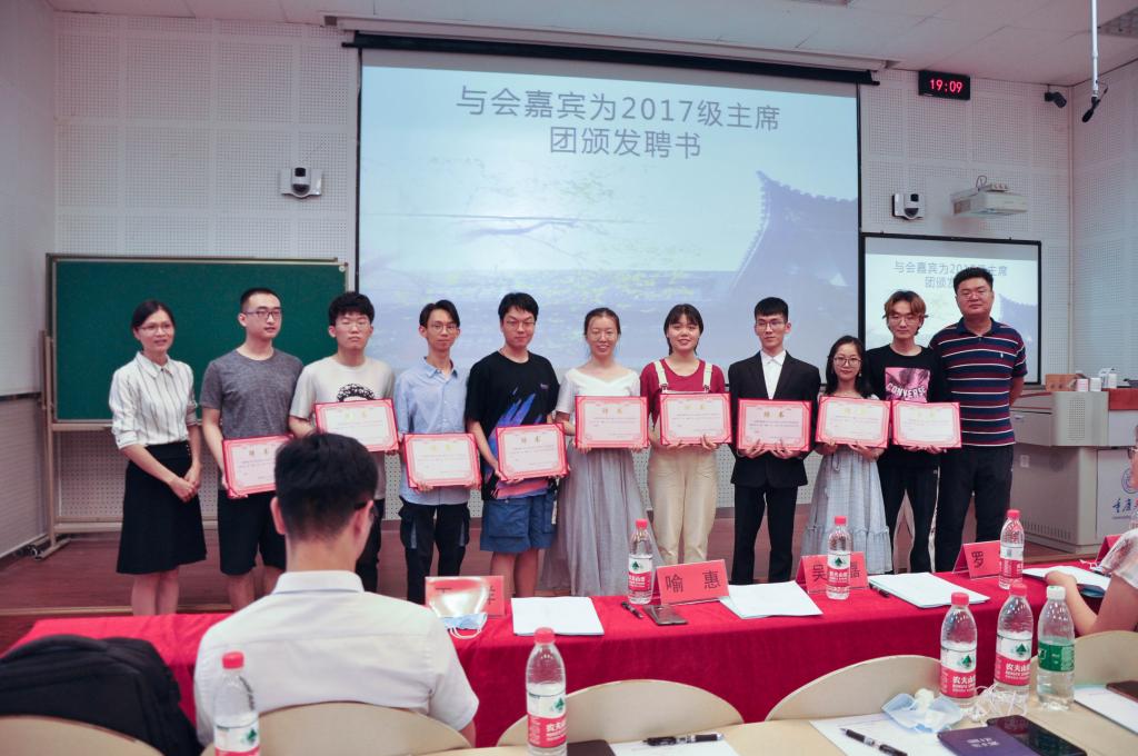 首先,由吴嘉老师为2017级主席团成员颁发聘书。这份聘书代表着老师们对各2017级主席团成员一直以来学生工作的肯定,是对他们最大的认可。