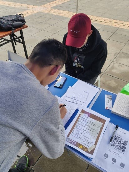 “万事开头难”,一开始,并没有很多人停下来了解活动,更多的是匆匆离去。可是小组成员并不灰心,拿起信封和宣传单,开始向路过的人们简单地介绍活动的形式、目的等等。本来毫不关心的人们也被勾起了好奇心,欣然收下了信封并表示会写下自己的烦恼。还有人是在路过时被展板吸引住,主动前来拿取信封。更有人,是在网上看到了宣传的说说,特意前来,希望自己的烦恼能够被解决、也希望能为他人解忧…