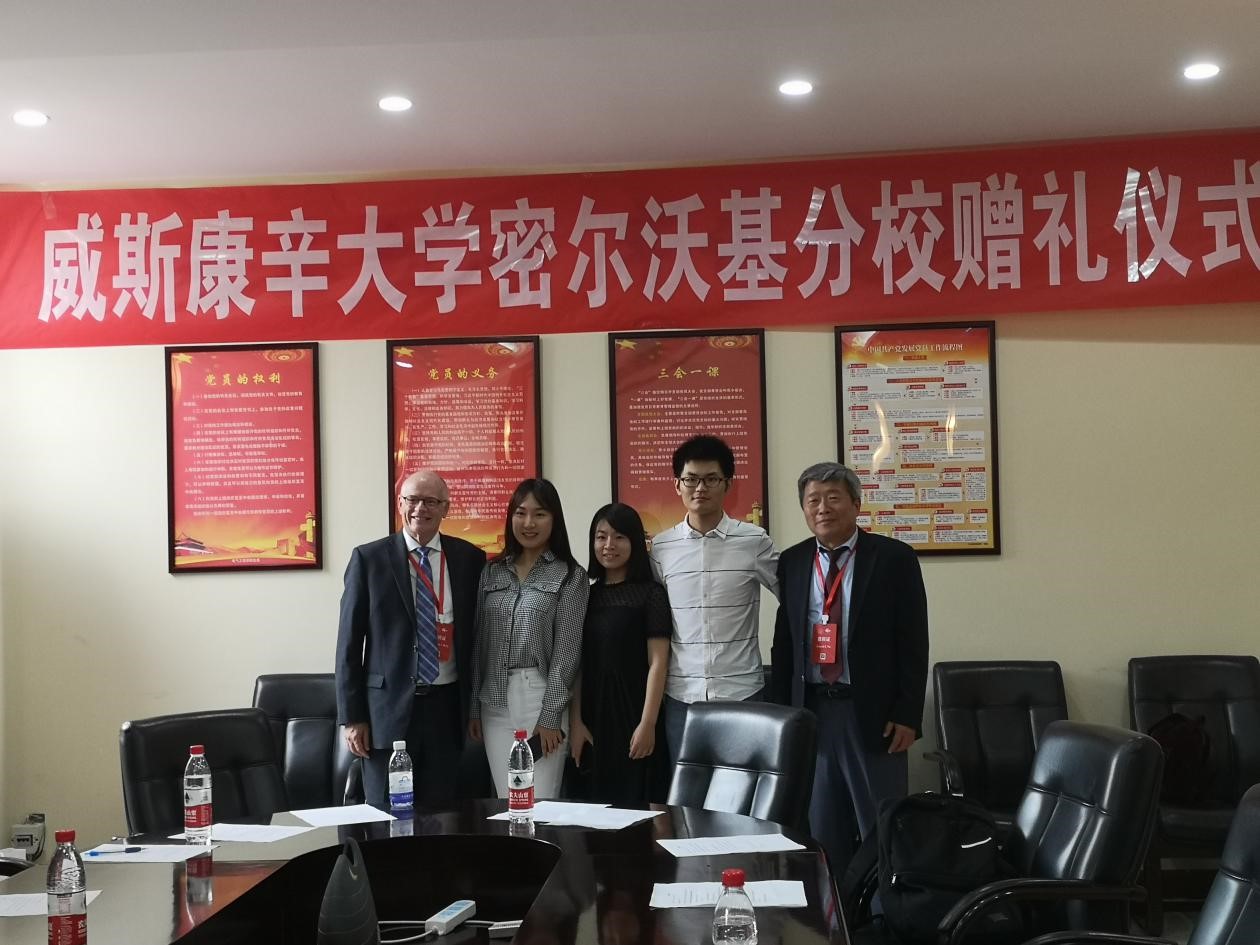 活动末尾,出席活动的嘉宾和在场师生合影留念,至此,威斯康辛大学密尔沃基分校赠礼仪式圆满结束。