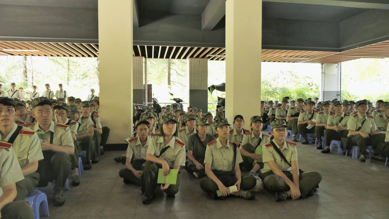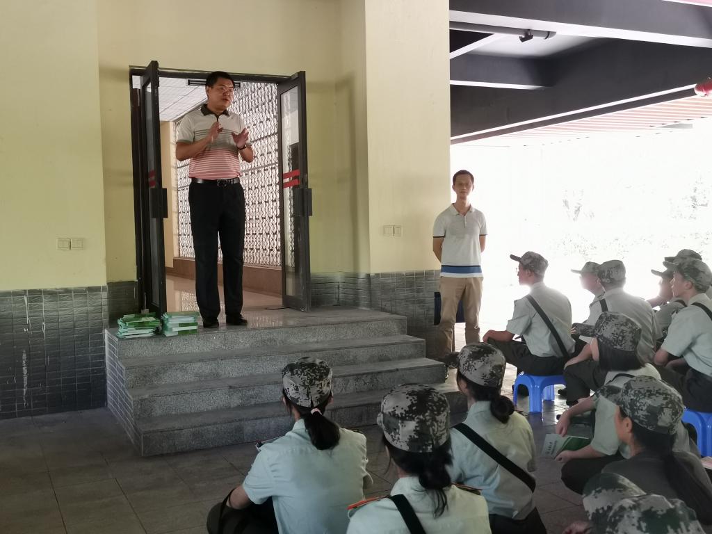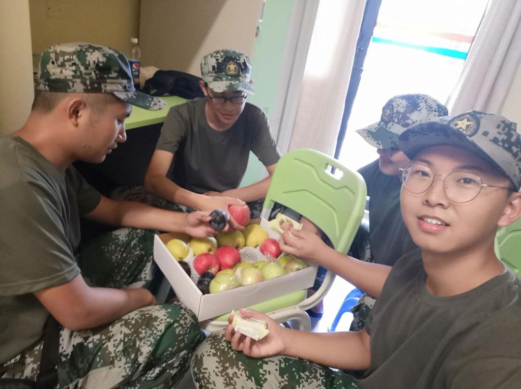 2019级辅导员罗敏等老师在松园二栋楼底架空层看望并慰问了正在军训的小说狂人