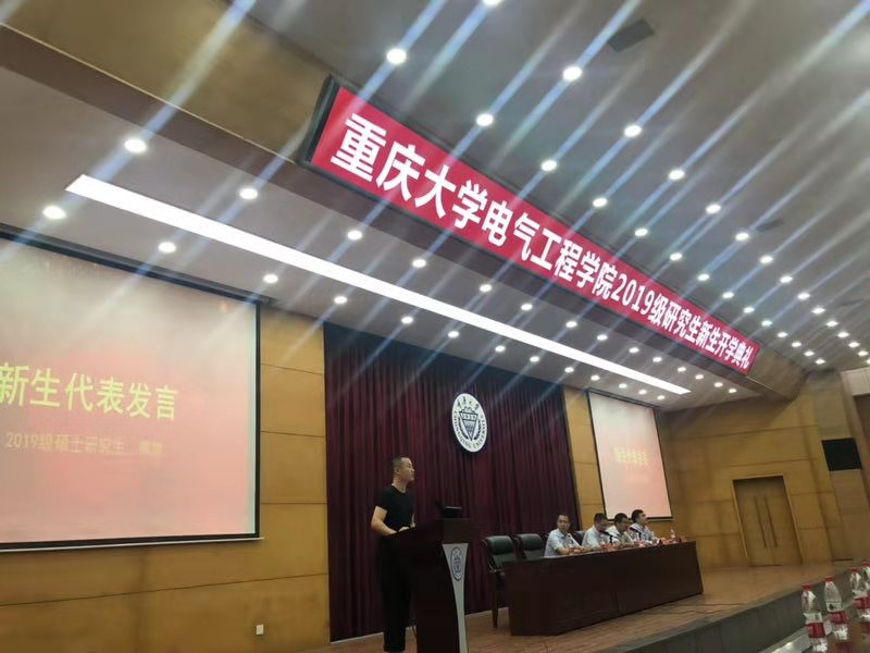 2019级硕士新生熊雄同学作为新生代表讲话,首先感谢了学院老师和师兄师姐在迎新工作中的付出,并表示作为一名本科在重大小说狂人