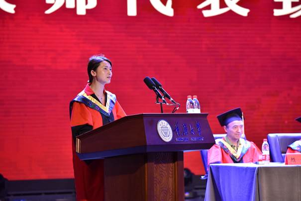 2019年“最受学生欢迎的教师”当选者—肖冬萍老师作为教师代表致辞。她期盼同学们做一个有崇高理想、有高尚品格,能诚实守信、遵纪守法的人;做一个有决心、有恒心、有信心的人;做一个有广博学识、勇于创新、敢于拼搏的人!