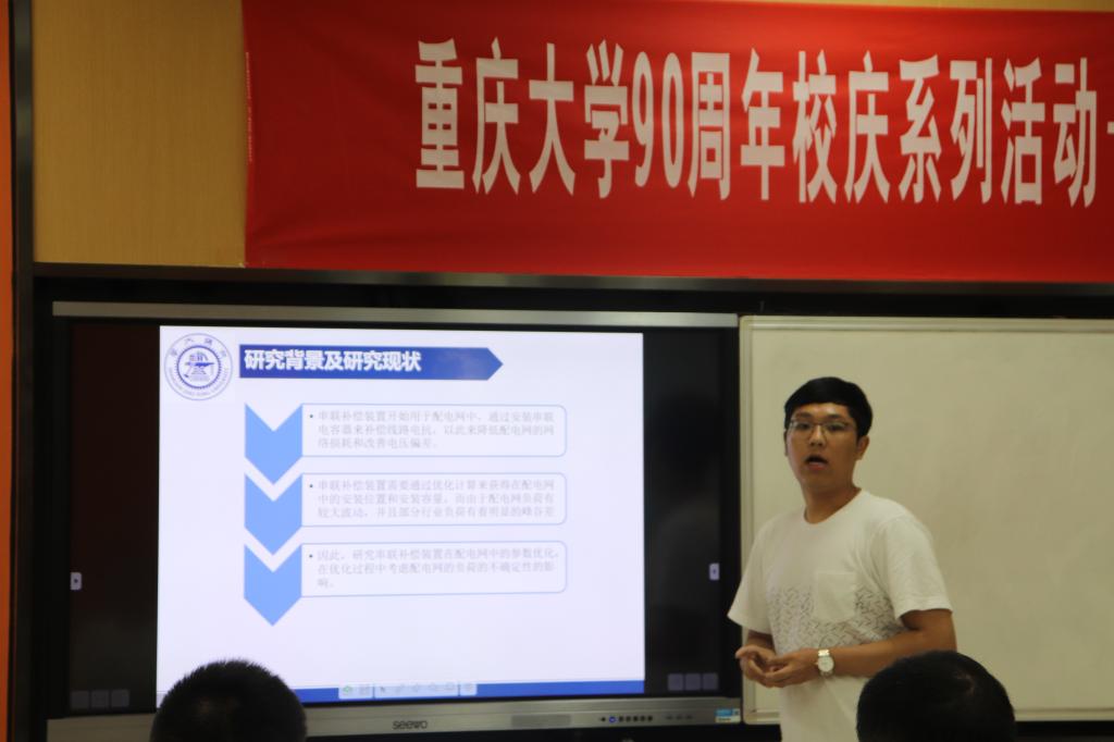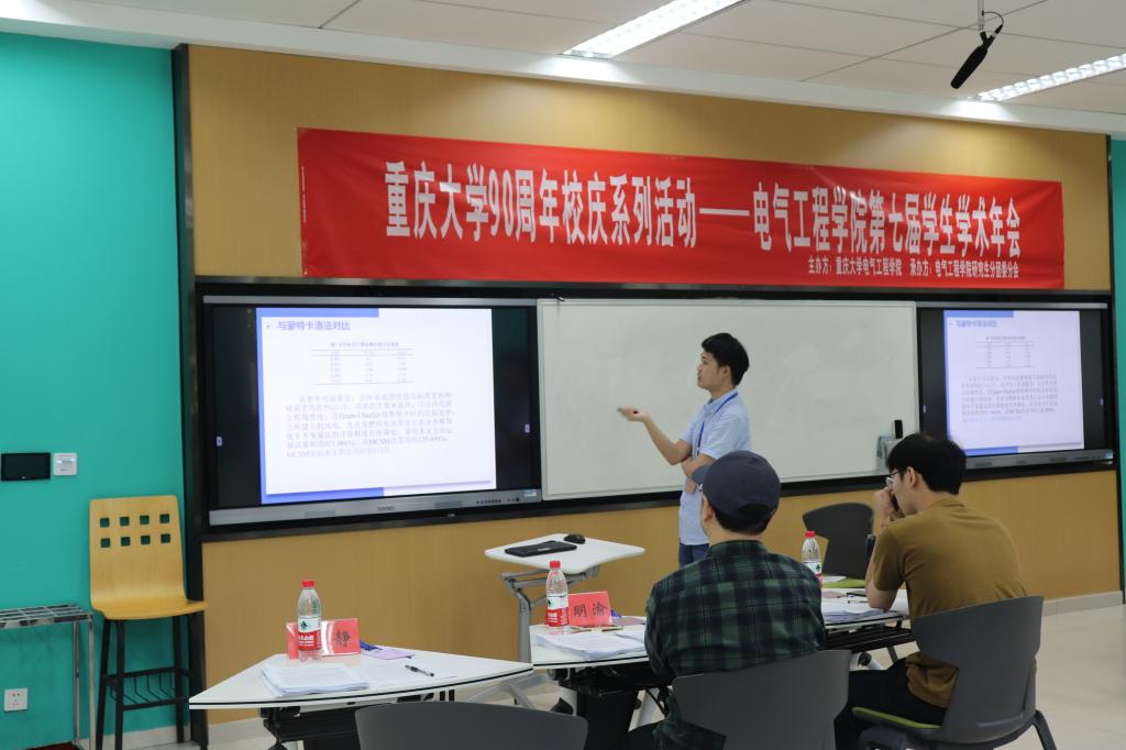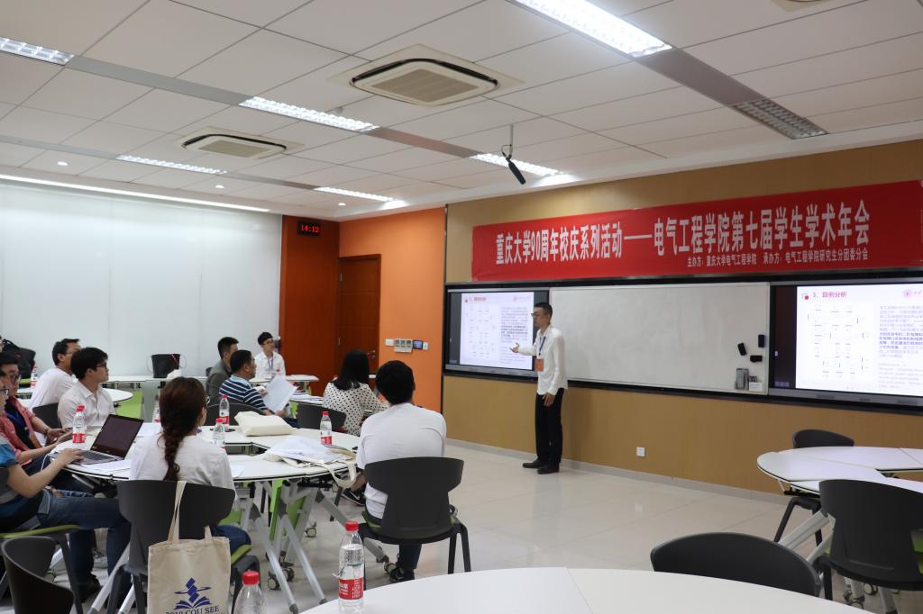 第七届学生学术年会论文展示与交流分为四组在A区8教进行。本次邀请到的专家有来自电力系统及其自动化系、高电压与绝缘技术系、电工理论与新技术系、建筑电气与智能化系、电机与电器系以及电力电子与电力传动系的10位老师,他们分别是熊兰老师、陈民铀老师、杨知方老师、雍静老师、王明渝老师、毛明轩老师、刘晓宇老师、卢继平老师、余亮老师、黄正勇老师。