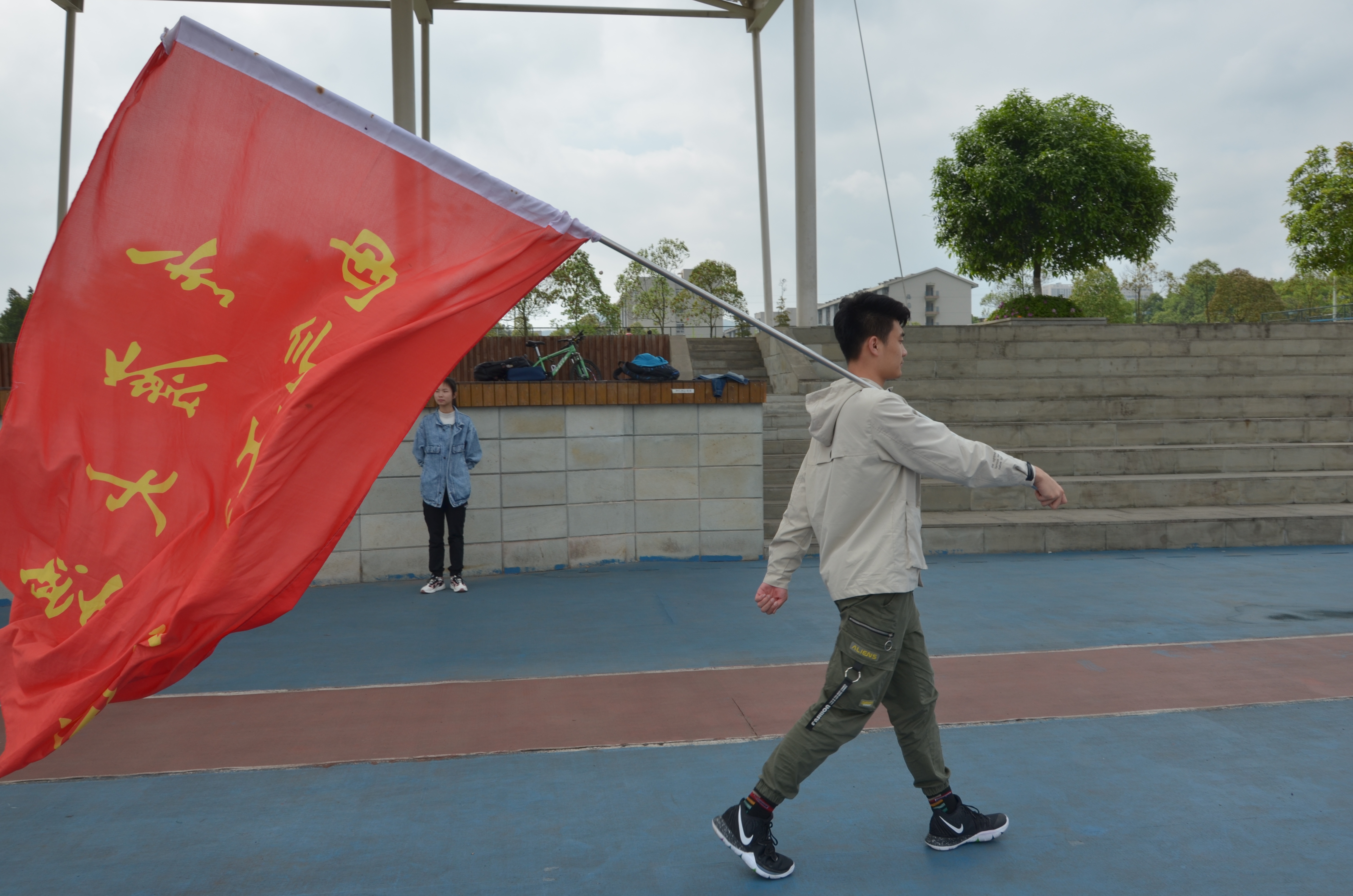 此前18级的同学们已经进行了多次训练,分别针对队列行进、队形变换、创意展示等环节进行了针对性的练习。本次是较为正式和完整的一次演练,目的是对之前的训练内容进一步强化,同时查漏补缺,力求做到尽善尽美。