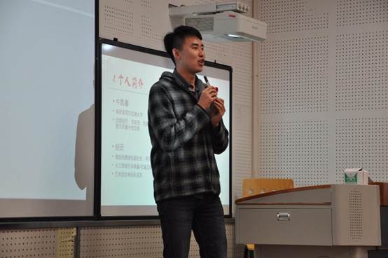 而后,牛凯春学长同大家分享了出国留学方面的经验。牛凯春学长已保研至西安交通大学,并将于大四下学期赴美交流一学期。学长从大一入校就开始关注留学方面的信息,虽然本科没有选择出国,但是自己有很多资讯想和学弟学妹们分享。他通过PPT向同学们详尽地介绍了出国交流项目,并强调,语言考试需提早准备,为自己的目标而努力奋斗。
