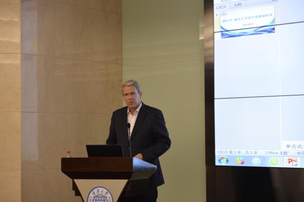 仪式开始后,王旭副书记代表学校致辞,对麦明锐先生一行的到来表示热烈欢迎,并代表学校对西门子心系教育,捐资助学的义举表示感激。她谈到,小说狂人