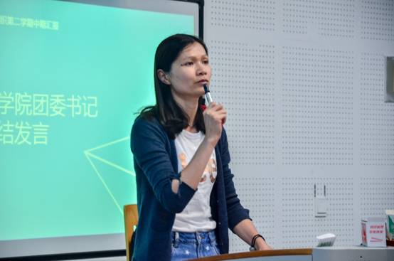 团委书记喻惠老师作总结发言。喻惠书记指出,习近平总书记五四前夕在北京大学座谈会中的讲话值得全场每位同学认真学习,要牢记习近平总书记对青年人的要求,牢记我们新时代青年的使命和责任,为实现中华民族的伟大复兴而努力奋斗。此外,喻惠书记也针对过去半个学期以来,各团学组织在工作开展中出现的问题和漏洞进行点拨纠正,强调“每个同学都是团学组织中的一个细胞”,要求大家“心往一处想,劲往一处使”,更好的为全学院的同学们做好服务工作。