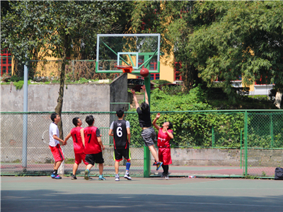 2018年“电苑杯”研究生篮球赛在A区竹林篮球场展开第三日的角逐。正午时刻,阳光明媚,不论是正在热身的球员还是一旁呐喊助威的观众,都洋溢着青春的活力。