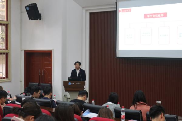 学生会权益部部长姚一鸣同学作经典案例分析。他介绍了电气图书馆的建立,虎溪一食堂垃圾桶的增设,洗衣房洗衣机消毒及虎溪校区校园电瓶车配备校园卡打卡设备这四个议案,展示了权益部门在为全体学生服务中的重要作用。他认为,学生权益的保障在于学生群体的积极主动,权益部就是协助各位同学将自身诉求传递到学校各职能部门,起到桥梁纽带作用,并在议案提交成功后实现对实施过程的监督反馈。他希望以后的工作中有更多的同学能够知校爱校,为学校发声,为学生发声。