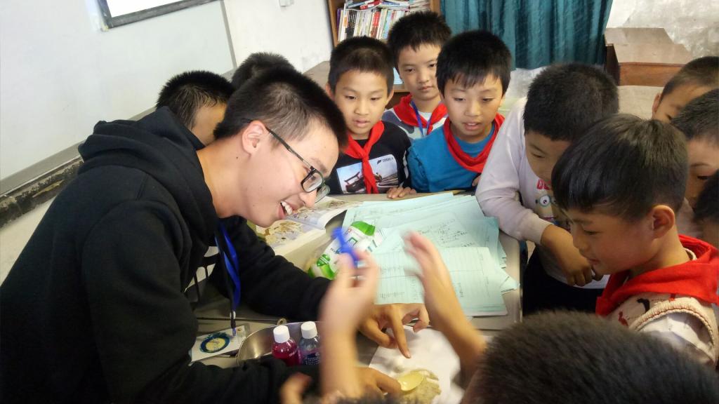当志愿者们一走进教室,同学们便投以好奇惊喜的目光,思量着志愿者们手中的器材能为他们带来怎样的惊喜。在志愿者进行简单自我介绍以后,志愿者以“胡椒粉与盐巴的分离”实验拉开了科技支教的序幕。志愿者首先向孩子们提问:“小朋友们,老师不小心把食盐和胡椒粉混合在一起了,你们有办法帮老师把它们分离开吗?”小朋友们积极进行思考,接连提出了好几个办法,但是都没有成功地分离开。“那么孩子们看老师的办法好不好啊!”志愿者便开始了今天的第一个实验——胡椒粉与盐巴的分离。当胡椒粉与盐巴分离的那一刻,小朋友们都惊叹着,“哇,好神奇!”,“让我来试试,让我来试试!。”......