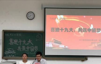 电气学院2017级各班于虎溪校区第一教学楼举行了主题为《喜迎十九大,共筑中国梦》的团学活动。