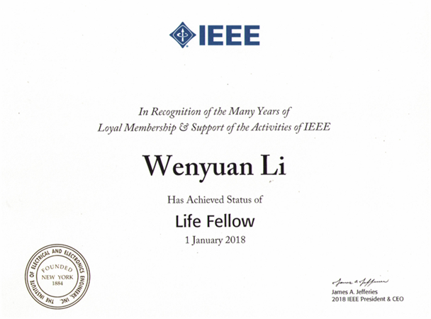 李文沅院士颁发了终身会士荣誉证书,这使得李文沅院士成为我校和重庆市获此殊荣的第一人。IEEE终身会士称号颁给长期为协会做出学术贡献的,年龄超过65岁并且年龄与会员年限相加超过100的IEEE会士。此前,李文沅院士曾因其在电力系统可靠性和概率规划方面的贡献于2002年当选IEEE会士。