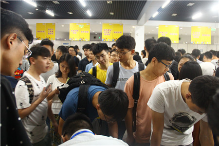 今年的迎新接待站依然设置在主教学楼一楼大厅。拾阶而上,跟随着工作人员的引导和现场的标识指令,新生们可以很容易找到电气学院的纳新点。在现场,电气学院研究生分团委分会的工作人员井然有序的进行着新生报到注册工作。新生们只需交上通知书并签字,即可领取研究生校园卡,再进入下一个报道环节。