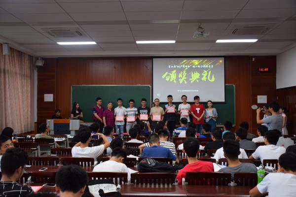 首先进行的是本次大赛的赛程回顾。宣讲会、培训、预赛、作品测评,各个环节历历在目;智能机器人、智能窗帘、计算器,精美作品令人叹为观止。随着大赛主题视频的播放,本次大赛的诸多精彩内容,在三分钟的光影间栩栩如生了起来。 在简单回顾赛程之后,翘首期盼的获奖名单终于浮出水面,在台下缀满期冀和紧张的目光间,侯世英主任为大家宣读了表彰决定,主持人江雨含揭晓获奖队伍名单。伴着如潮水般的掌声,十五支优胜奖队伍、六支三等奖队伍、三支二等奖队伍和一支一等奖队伍的代表依次上台领奖,由颁奖嘉宾颁发礼品和荣誉证书,并合影留恋。