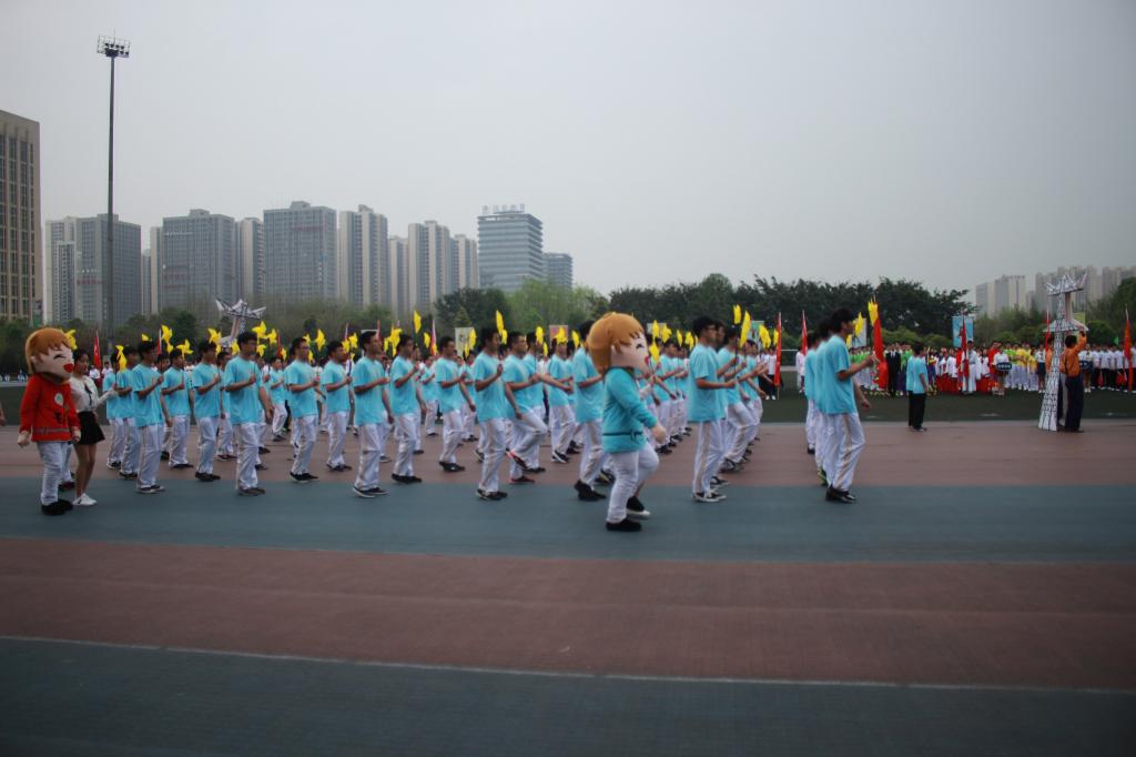 副校长杨丹对运动会以及开幕式进行致辞,杨丹副校长出了大学生的身体健康和素质对于我国未来发展的重要性,并呼吁全校师生走出宿舍,到户外强身健体。接下来运动员代表和裁判员分别进行了庄严的宣誓,保证本届运动会的公平与公正。在运动员退场后,一群身着红衣富有活力的同学井然有序的跑入了操场中间,开始了精彩的中国第一套戏曲广播体操的表演。广播体操表演结束后,各学院的健身操方阵入场开始了小说狂人