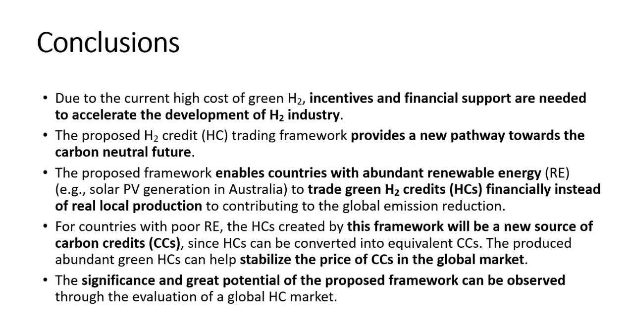 最后,董教授总结道,由于绿氢的成本较高,还需要激励和资金的支持来加快氢产业的发展,但目前所提出的氢交易框架为实现未来碳中和提供了一条新途径。
