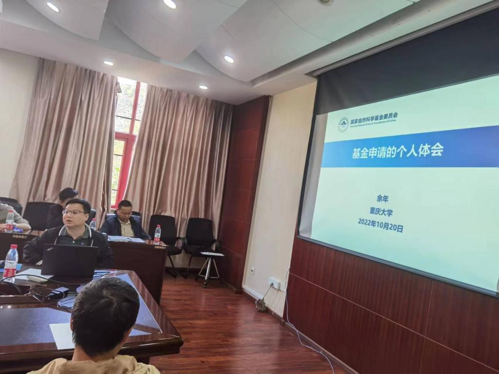 最后,2022年国家优秀青年基金获得者余年教授作了题为“基金申报的个人体会”的报告。在报告中,从申请总体要求、研究内容和遇到的问题等方面深入细致地向与会人员分享了自己的经验体会,大家进行了交流讨论。