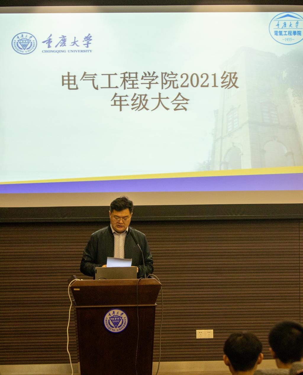 2021级年级大会在虎溪校区理科楼101会议室顺利召开。学院党委书记胡建林、院长谢开贵、副院长张淮清、副院长余年、学办主任罗敏、2021级辅导员喻惠以及2021级全体本科生参加了此次会议。会议由学院党委副书记吴嘉主持.