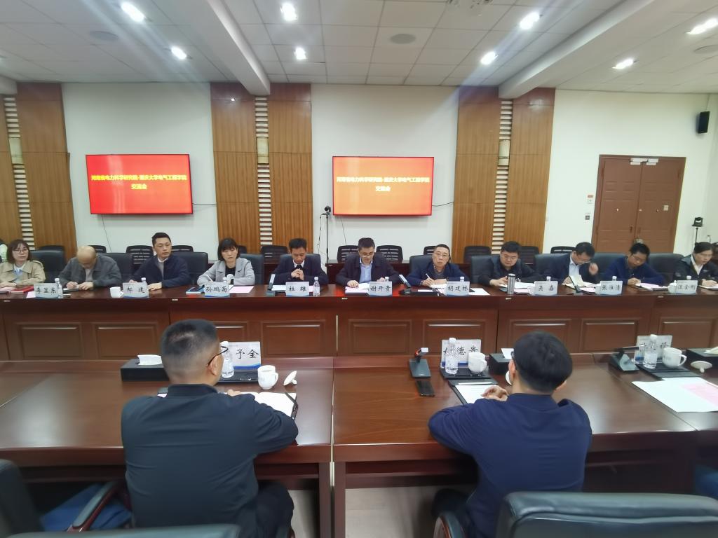 2023年3月24日下午,国网河南省电力公司电力科学研究院院长姚德贵一行来我院交流,学院党委书记胡建林、院长谢开贵出席。会议由副院长杜雄主持。