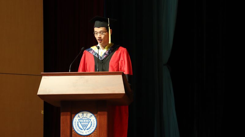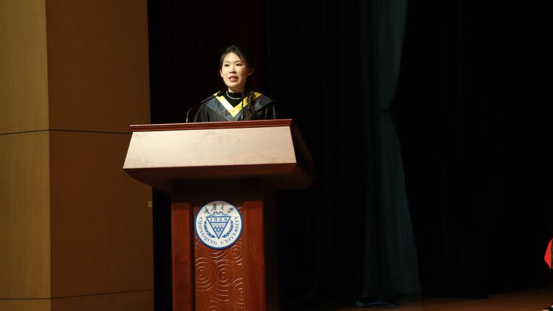 本科2019级毕业生崔恩铭同学作为毕业学生代表发言。他代表毕业生向培养教育同学们的师长,关心爱护同学们的父母致以崇高敬意并表示衷心感谢。