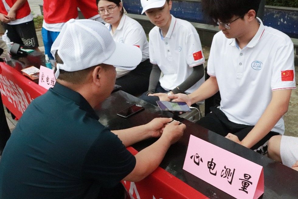 “振兴美丽乡村,‘电’亮科创武隆”实践队来到重庆市武隆区仙女广场,以“科技赋能助力公益”为主题,面向当地社区居民开展了爱心公益测量服务,助力基层医疗体系建设。