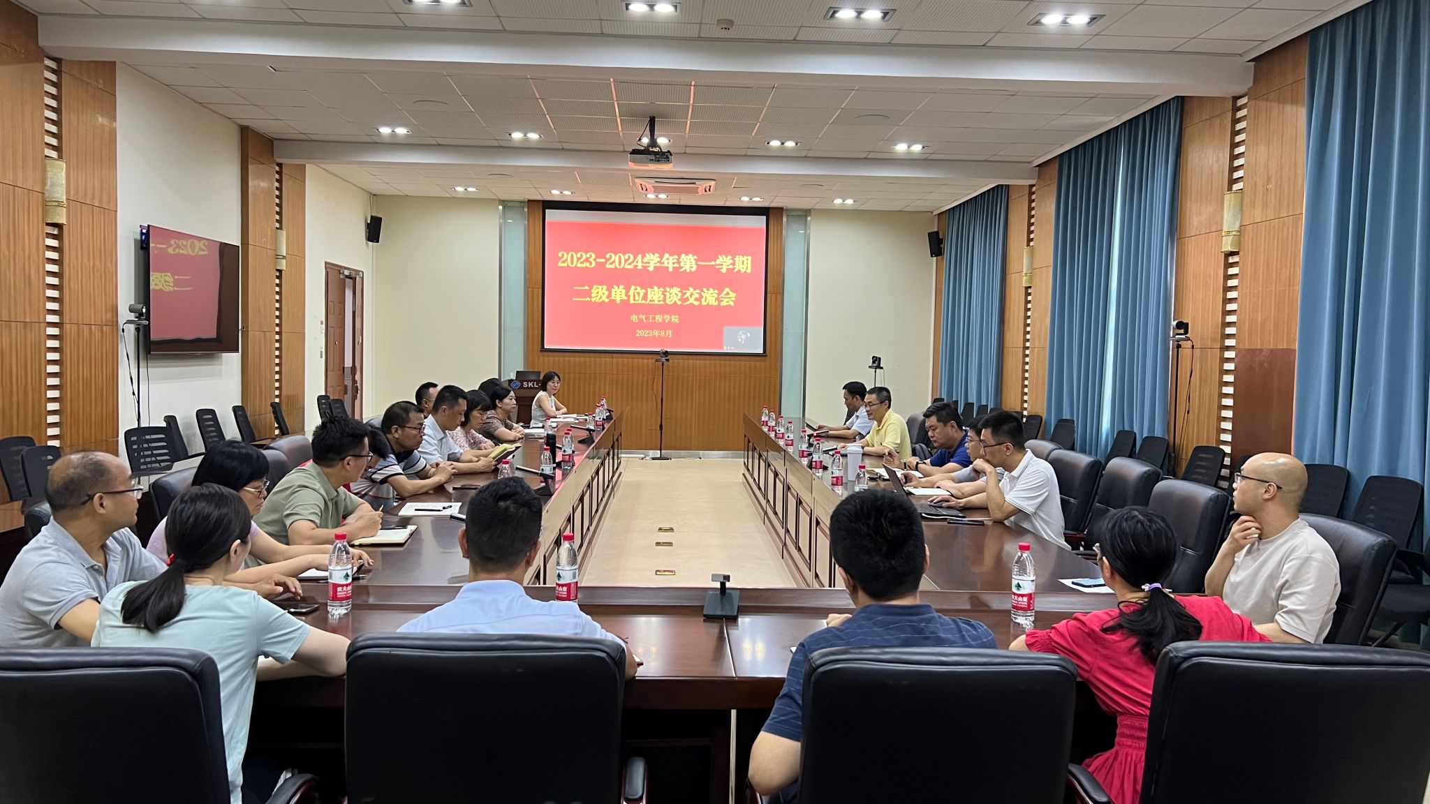 围绕如何推动学院高质量发展在6119报告厅举行了新学期院内二级单位座谈交流会。学院党委书记胡建林、院长谢开贵、党委副书记吴嘉、副院长杜雄、输变电装备技术全国重点实验室副主任曾礼强、雪峰山能源装备安全国家野外科学观测研究站副站长张志劲和各系(办/中心)主任、支部书记参加了本次会议。会议由院长谢开贵主持。