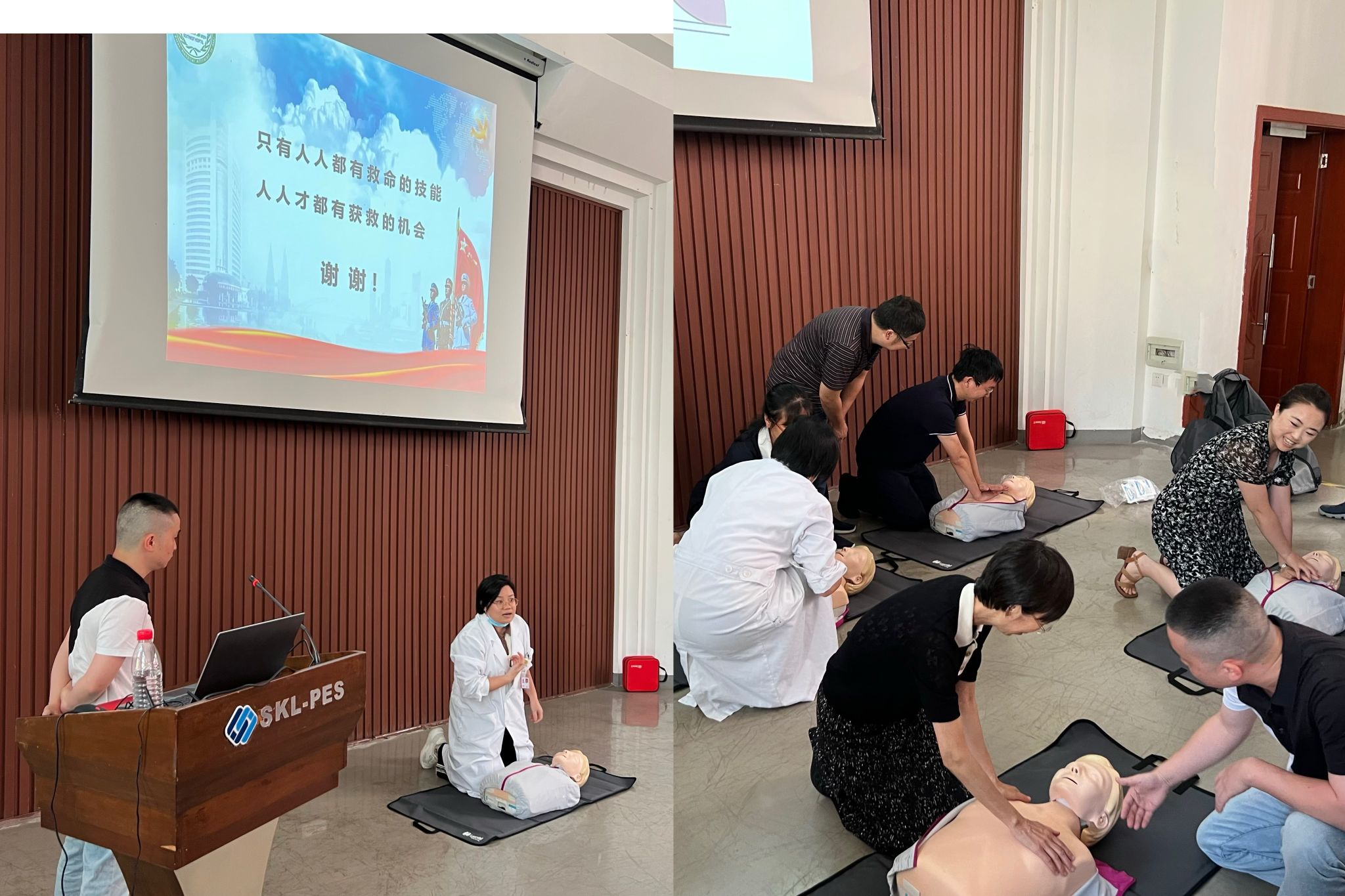 会后,为响应“健康中国”的号召,进一步普及医疗健康知识和强化学院师生员工应急救护基本技能,学院专门邀请了陆军军医大学第一附属医院西南医院急救部张军、曾峰两位医生为学院师生开展了“成人心肺复苏”为主题的应急救护医疗讲座,得到了在场师生的热烈反响并积极踊跃参加实操培训。
