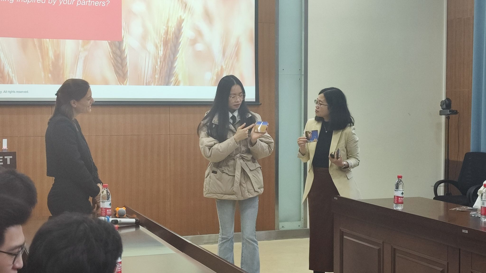 除了分享自身的职业故事,Stefanie Ratzel还引入了世界前沿的互动式图片教练方式,引领同学们深入思考什么样的职场才能激发个人的生命能量,达到生命的最佳状态。同学们积极参与,选择了能体现伟大职场的照片,并在小组内展开了激烈的讨论。这种创新的互动式交流激发了学生们的创造力和思维,为他们提供了更多职场启示与思考。