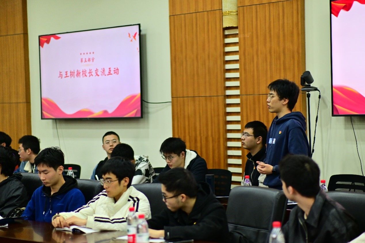 互动交流环节,党员同志们结合党支部建设、党员先锋模范作用发挥、个人成长路径规划、科研能力提升等积极向王树新提问请教。王树新结合个人学术和工作经历,与同学们进行了深入交流,勉励同学们大力传承弘扬“复兴民族、誓作前锋”的重大精神,敢于创新、执着精进,自觉将个人理想融入中国式现代化火热实践之中,争做新时代新征程的“四有”好青年。