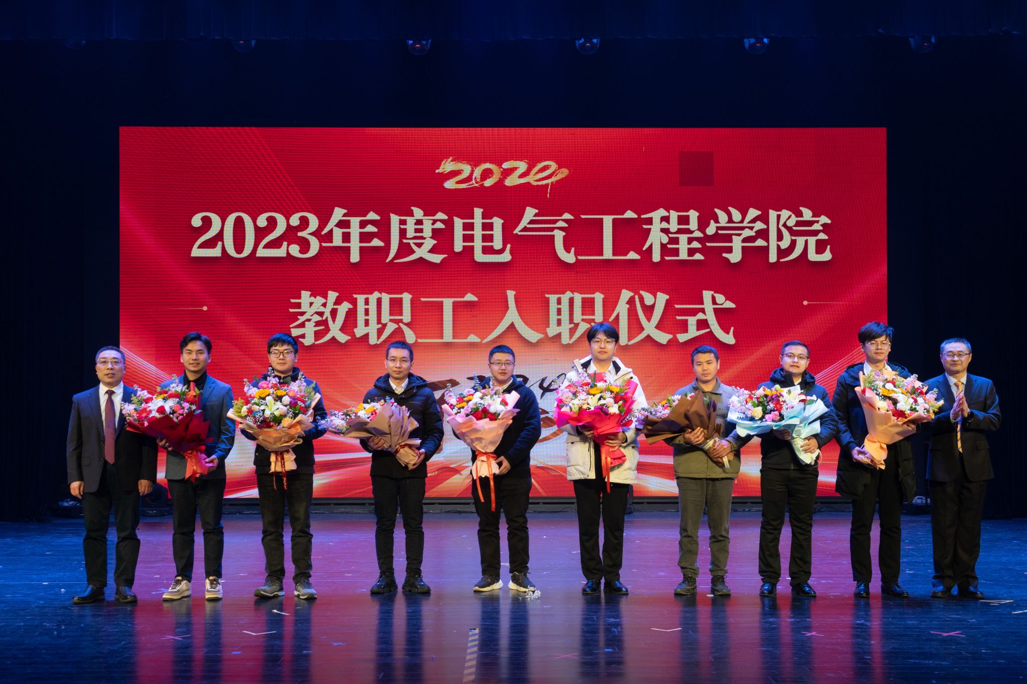 随后,在学院荣休及入职仪式上,谢开贵代表学院为今年光荣退休的邱道平、张兴老师以及新入职的李雨泰、冯谟可、杨国林、雍培、陈冠宏、赵成、张昂、穆峰等8位教师献花,感谢退休教职工数十年如一日地无私奉献,同时欢迎新入职教师为学院发展注入新鲜血液。