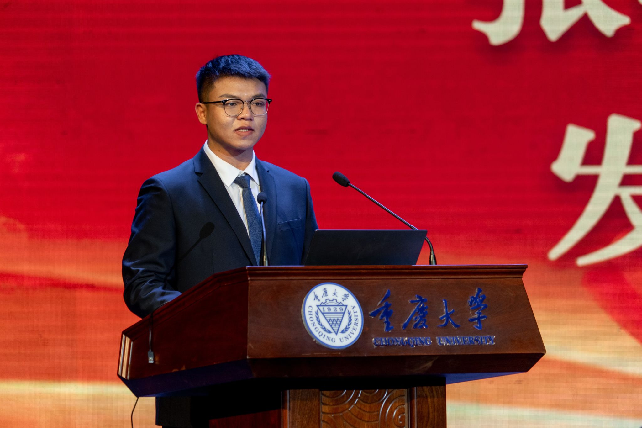 2021级研究生张明宇同学作为获奖学生代表发言,他从学术能力成长、社会活动能力成长两方面,讲述了自己作为少数民族学子在学院和导师培养下徐徐成长的历程。