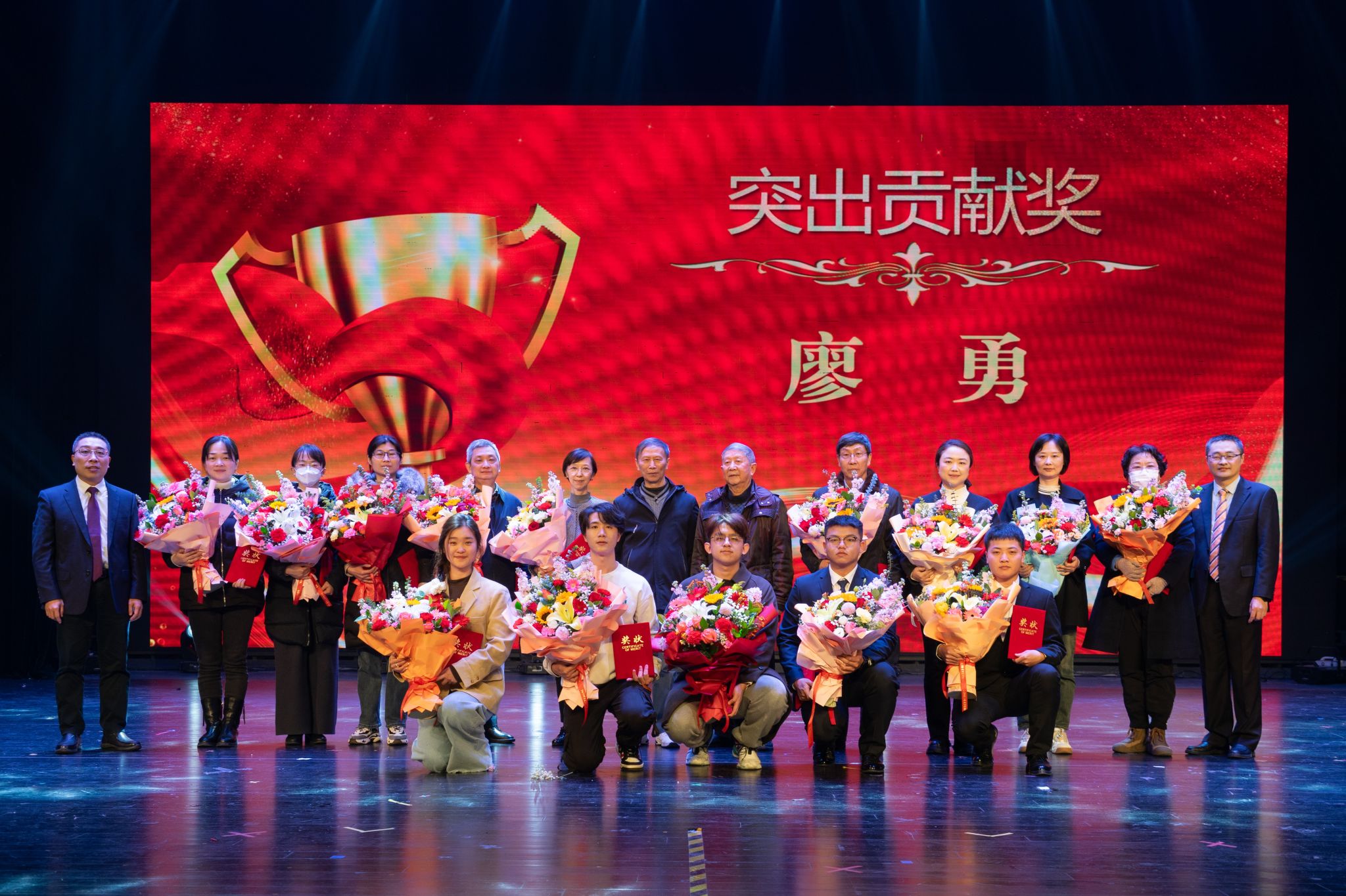 在第二十七届电气工程教育基金奖的颁奖仪式上,谢开贵宣读表彰决定,授予廖勇老师“突出贡献奖”;授予司马文霞、周念成、曾正等3位老师“研究生人才培养类”优秀教师奖;授予侯世英、林莉、杨丽君等3位老师“本科生人才培养类”优秀教师奖;授予肖馨“实验室类”优秀教师奖;授予张榕“管理类”优秀教师奖;授予张明宇等5位同学“优秀学生奖”。大会特别邀请了俞集辉、钟岷秀两位老教授为获奖师生颁奖并合影留念。