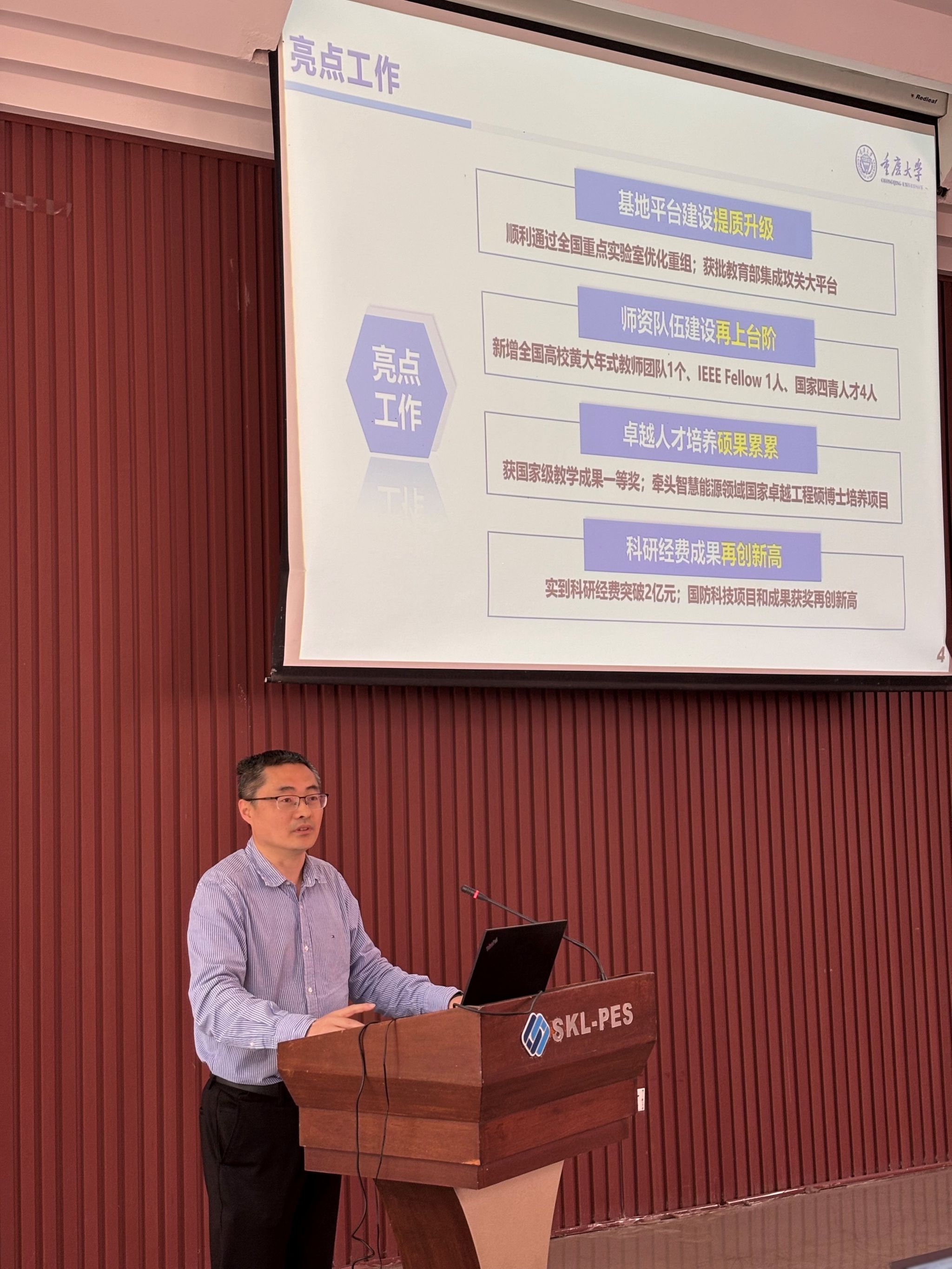 王晓静通报了学院2023年绩效总体发放原则和具体发放情况;杜雄就2024年国家和重庆市自然科学基金申报情况、科研能力建设、学科建设经费分配初步方案等进行了简要通报。杨鸣从本科教学规范、研究生过程管理等方面再次强调了教学纪律、培养要求和导师职责的重要性。曾礼强简要通报了学院实验室安全工作的巡察情况。