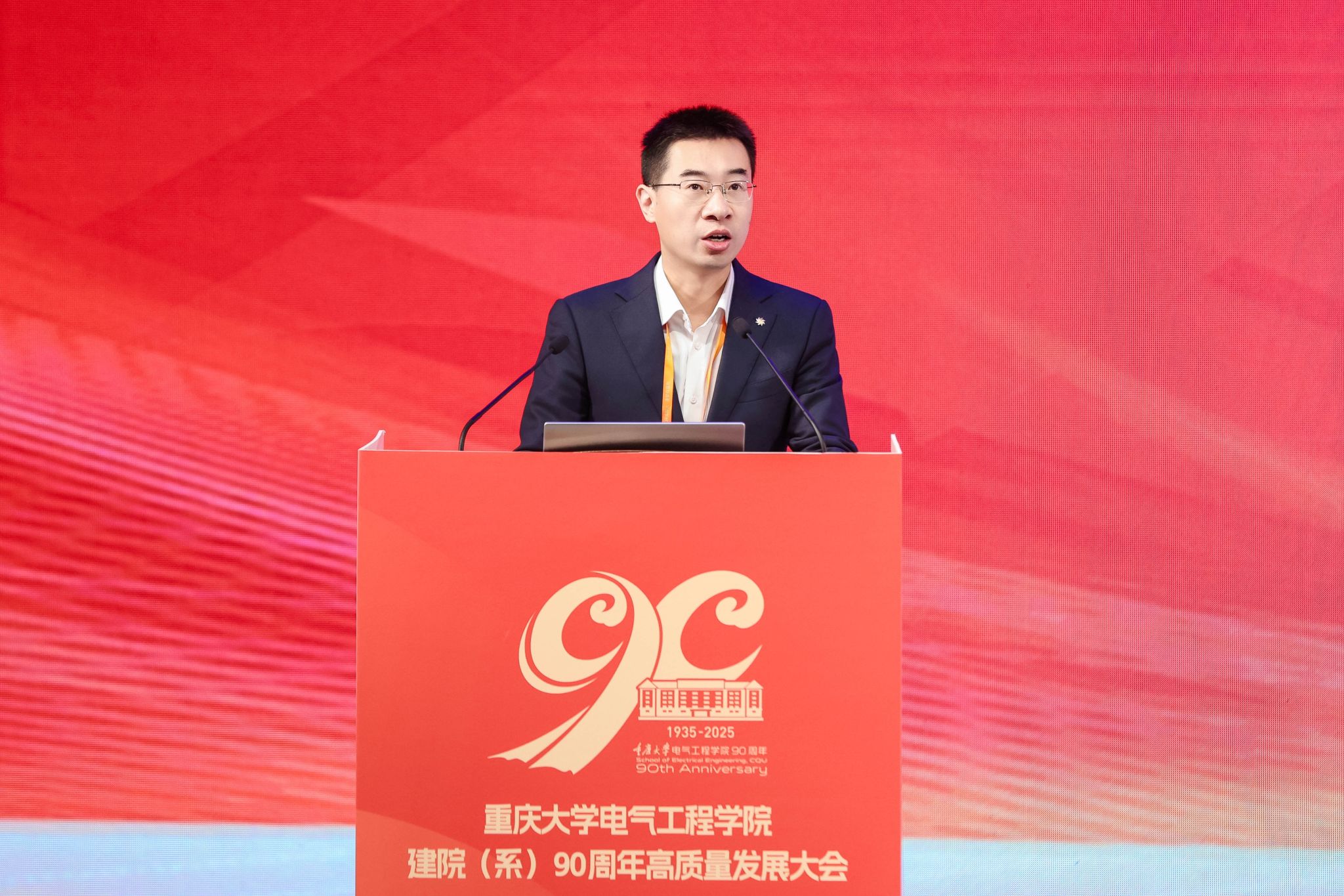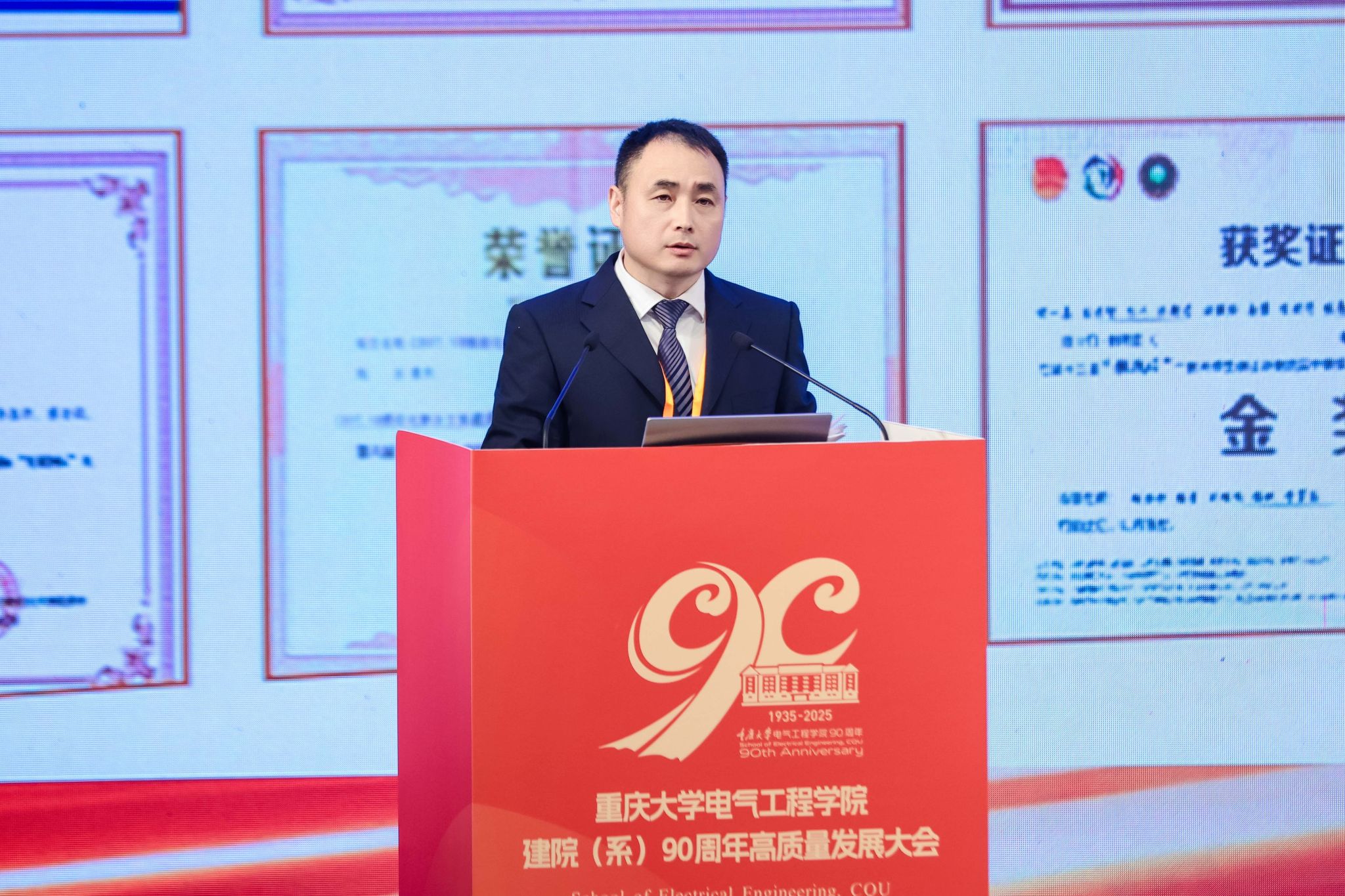 曾嵘作为兄弟院校代表向学院致以诚挚祝贺,并感谢学院长期对清华电机系的关心与支持。他回顾了90年来两校携手面向能源电力科技前沿,人才互济、科研协作,共同奠定中国电气工程高等教育基础,共同推动我国高电压事业技术进步。他表示,希望双方继承优良传统,服务国家“双碳”目标,探索能源电力的新理论、新技术、新方法,为构建清洁、低碳、安全、高效的能源体系作出更大贡献。