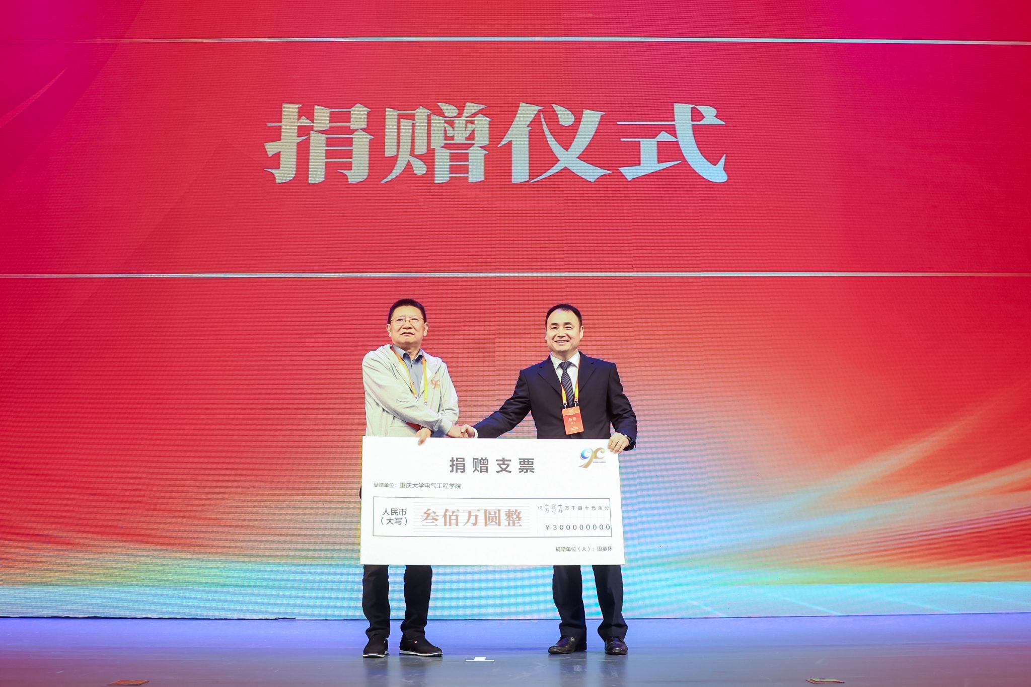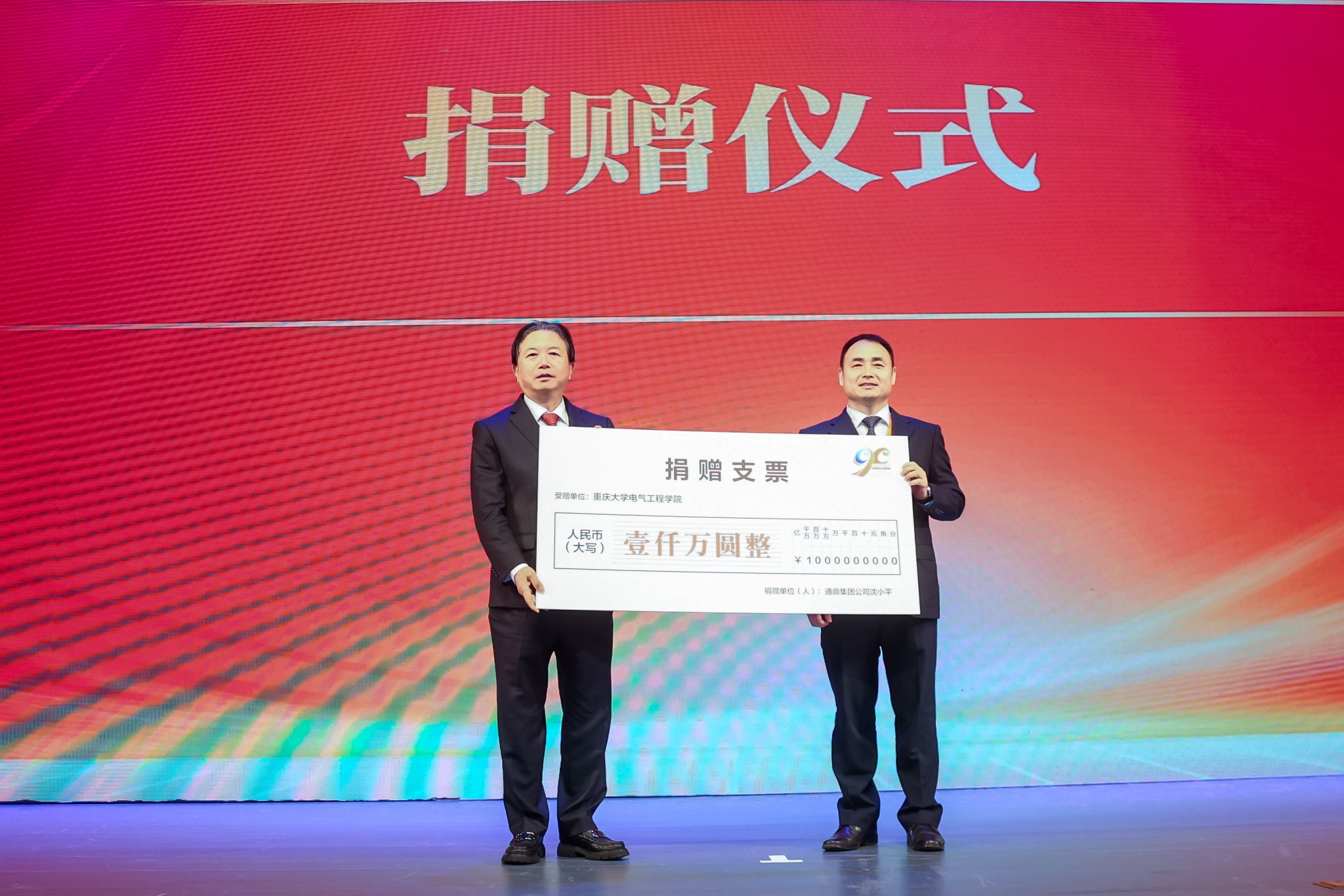 通鼎集团公司、四川英杰电气股份有限公司、重庆平创半导体研究院有限责任公司、德阳恒运电气有限公司等知名企业,深圳、浙江、成都等校友会电气分会等向学院捐资捐物,杨帆院长代表学院接受捐赠。
