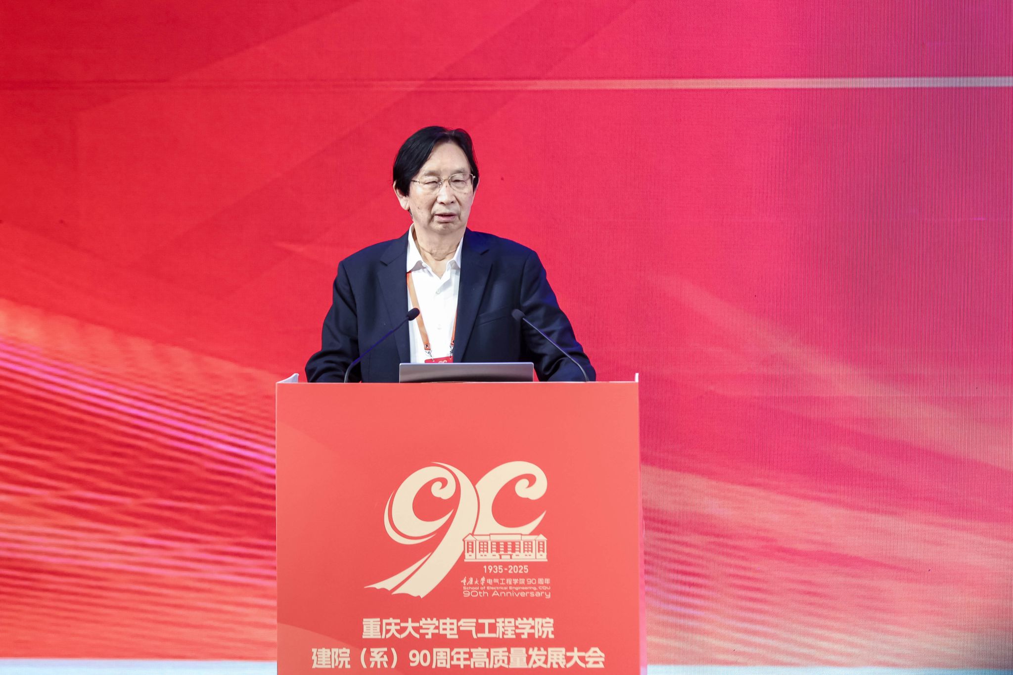 李立浧向学院建院(系)九十周年致以最热烈的祝贺,他表示,重大电气学院始终与国家能源电力事业同频共振,从三峡工程到“西电东送”特高压,处处闪耀重大电气人智慧,并追忆了中国电气工程领域的杰出科学家孙才新院士。他强调,站在新的历史方位,我国能源电力发展正迎来前所未有的大好时光,希望学院聚焦新型电力系统国家战略,持续贡献重大电气智慧;顺应数字化、信息化、智能化浪潮,推动传统学科与时俱进;坚持跨学科协同创新,打造面向未来的“新电气”前沿形态。
