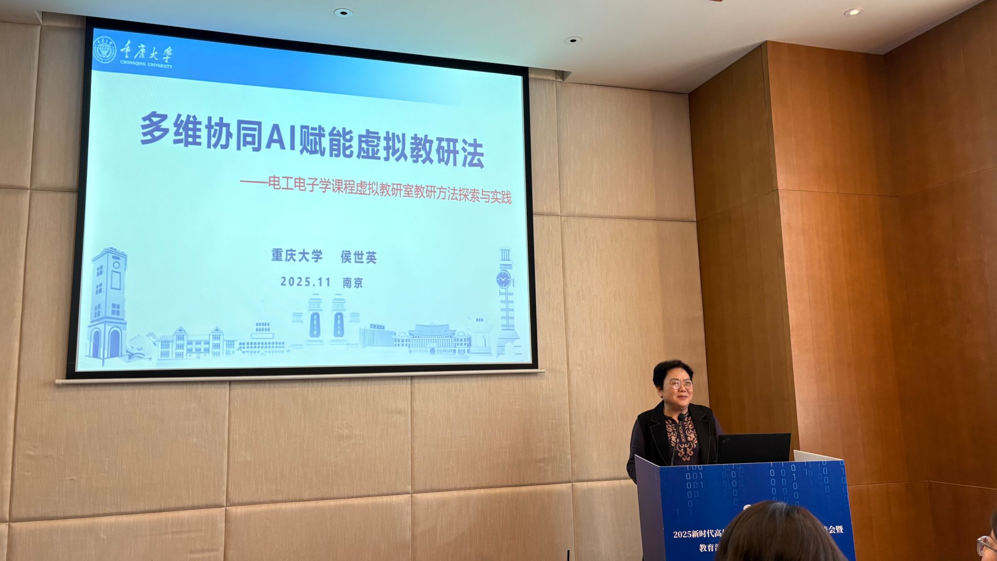 大会期间,侯世英教授应邀在“电类虚拟教研室建设与实践”平行论坛上,作了在构建“多维协同、AI赋能”新型教研模式方面的最新成果报告,引发与会代表热烈反响。