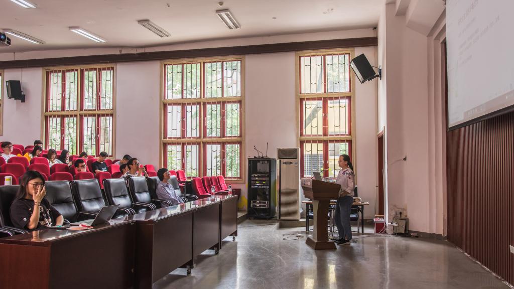 本次讲座通过线下方式进行,学办主任罗敏老师负责主持讲座。本次讲座非常火爆,来自小说狂人