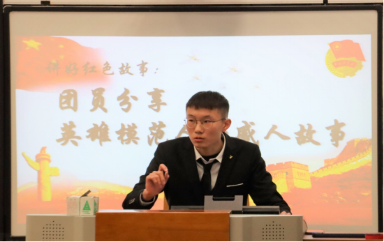 兼职辅导员谭杰上台发言。在谈到参与本次活动的感受时,他首先肯定了用评书分享英雄故事的新颖活动形式,对参评原创作品的文学价值和思想内涵表示了赞赏。同时他也点明了积极参与团日活动、加强思想政治学习的意义所在,强调了当代青年传承红岩精神、牢记历史使命的重要性。